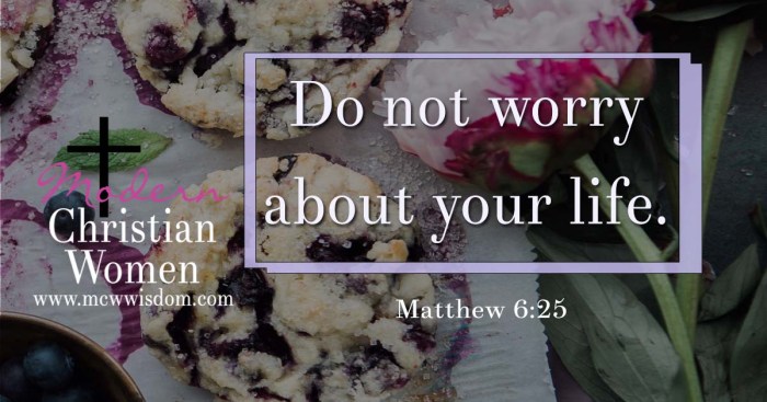 Do not worry about your life, what you will eat or what you will drink, nor about your body, what you will put on (Matthew 6:25, NKJV).
